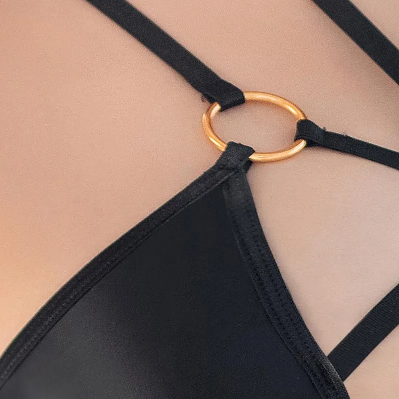 Особенности: блестящая облегающая ткань, вырез на шее с бретельками на груди, подчеркивающая красоту груди.