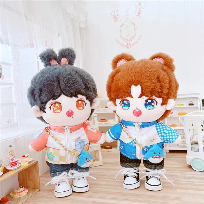 20 см аниме кавайная Плюшевая Кукла одежда черные синие джинсовые штаны для DIY 20 см мягкие куклы Повседневная куртка с рисунком акулы