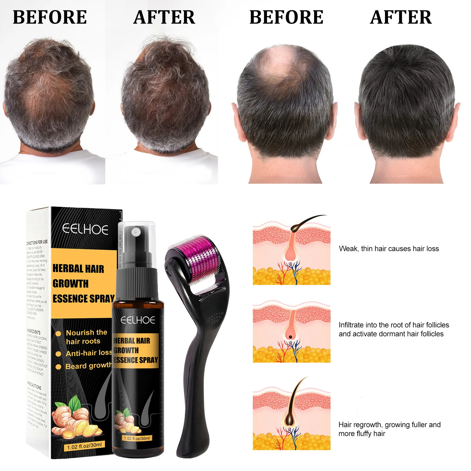 Это масло богато разнообразными природными питательными веществами, которые могут проникать в корни волосяных фолликул, восстанавливать и активировать спящие волосяные фолликулы, увеличивать поглощение питательных веществ и ускорять рост волос.