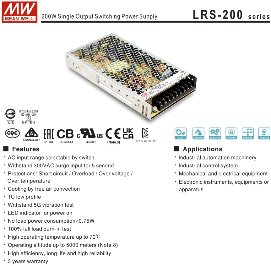 MEAN WELL LRS-200 серии 200 Вт 5 в 12 В 15 в 24 в 36 в 48 в одновыходное переключение источника питания.
