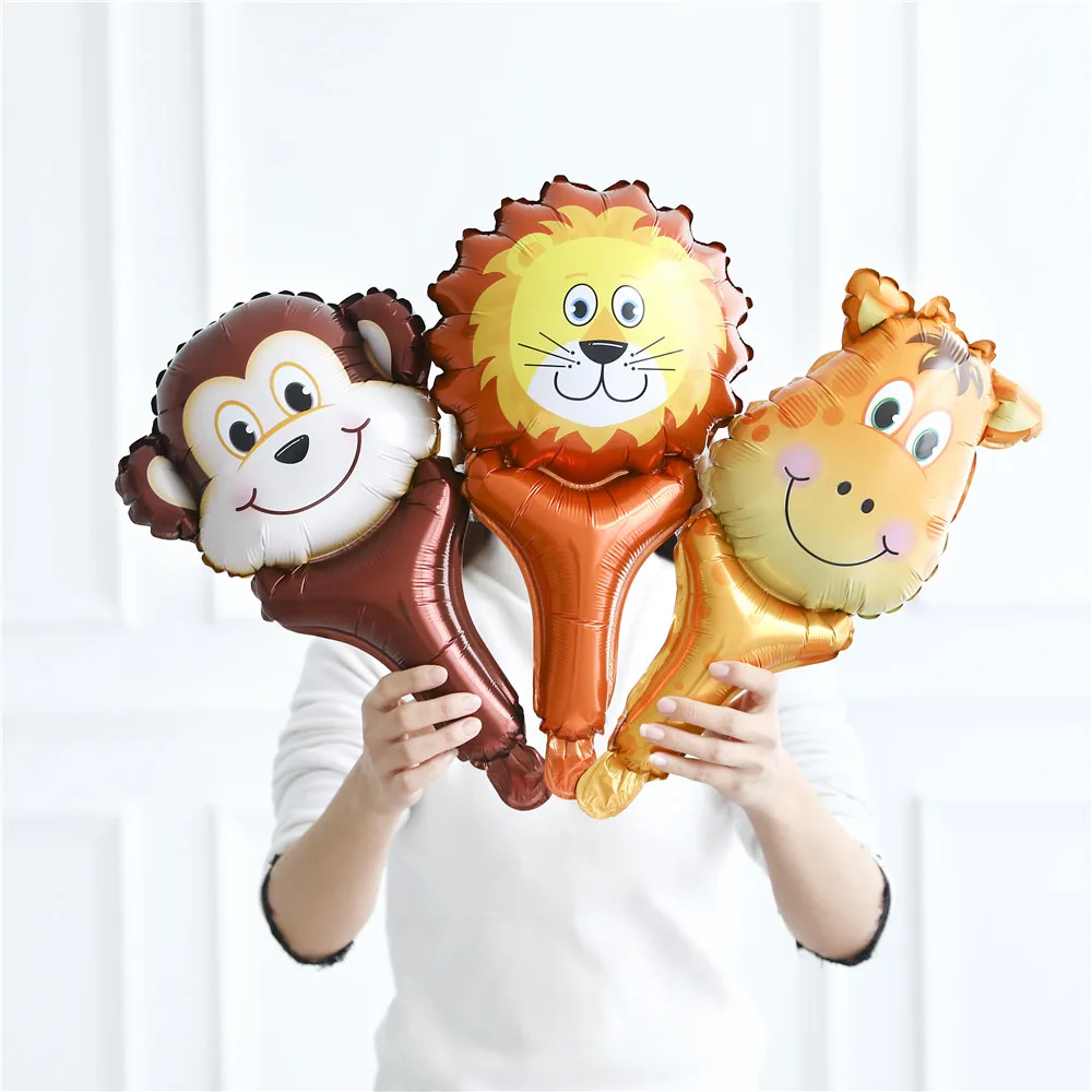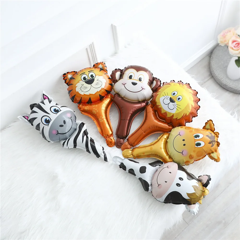 10 шт./лот, палка с головой тигра, фольгированные шары, ручной воздушный шар для животных, детские украшения для дня рождения, детские игрушки для душа