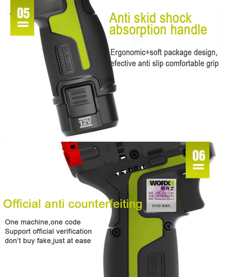 WORX беспроводные ударные отвертки WU132 12V 140Nm 4000ipm мотовелосипед с вентильным двигателем 42 шт набор сверл с Батарея платформа