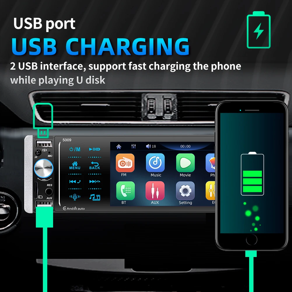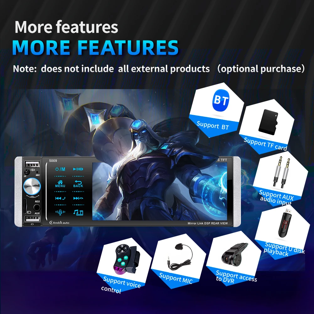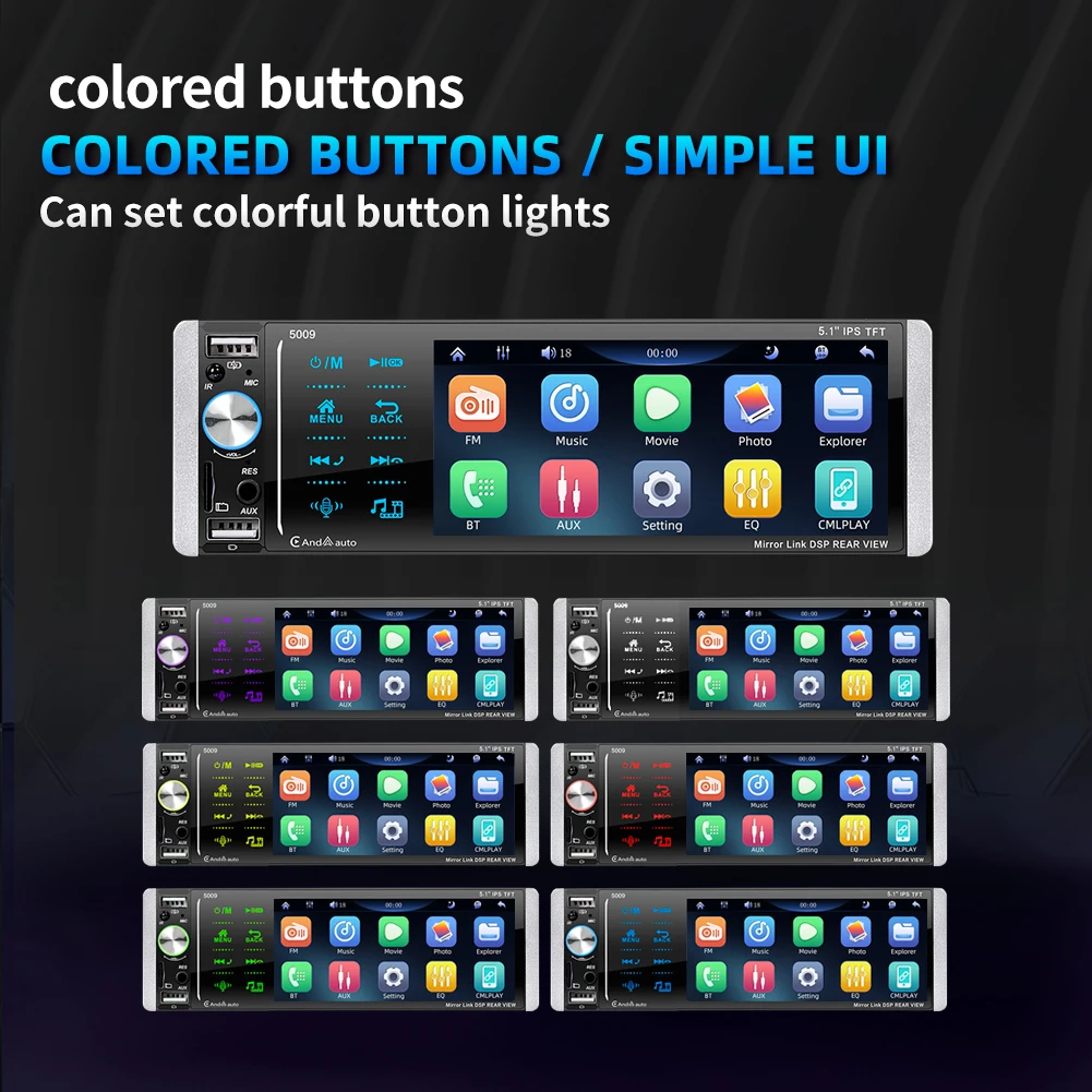 1Din Mp5 плеер с сенсорным автомобильным Радио RDS AM FM 4-USB 5,1 дюймов двунаправленное соединение Поддержка Android 10 Зеркало Ссылка Авто HD