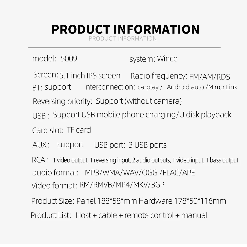 5,1 дюймов Автомобильный mp5 хост * 1,