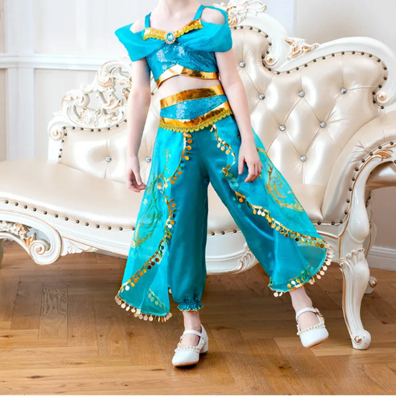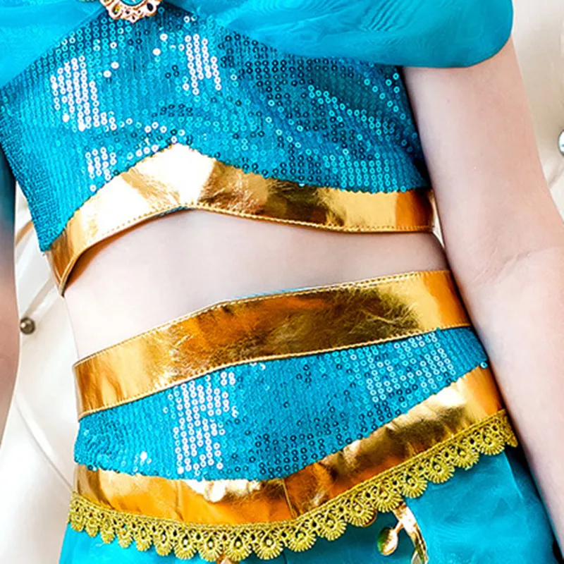 Костюм принцессы из аниме «Дисней», «Жасмин», карнавальный костюм для девочек, вечерние наряды, комплект детской одежды с блестками, подарок, детское платье