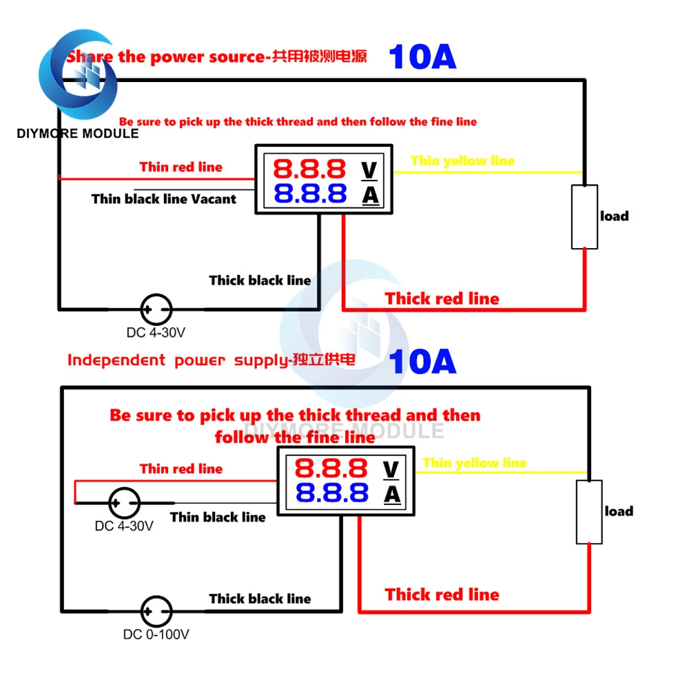 4. Диапазон измерения тока: DC0.05A ~ 10A (режим отображения 0.05A ~ 10.00A)