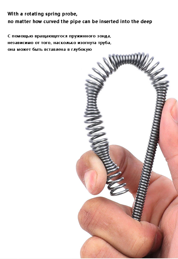 Змея раковины имеет эргономичную рукоятку пистолета, которая упрощает использование и делает более удобной обработку. Гибкая пружина может быть согнута более чем на 90 градусов, не ломаясь и не разжимаясь, что позволяет вам эффективно достигать раковины. Кроме того, если вы не знаете, как использовать его, подробная инструкция по эксплуатации научит вас, как легко сделать.