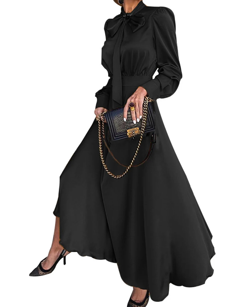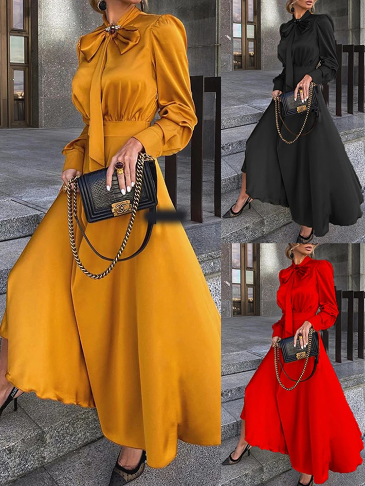 2022 весенне-осеннее платье макси, женское элегантное платье, подходит ко всему, с длинным рукавом, светские вечерние платья, темперамент, атлас, большие качели, длинное платье