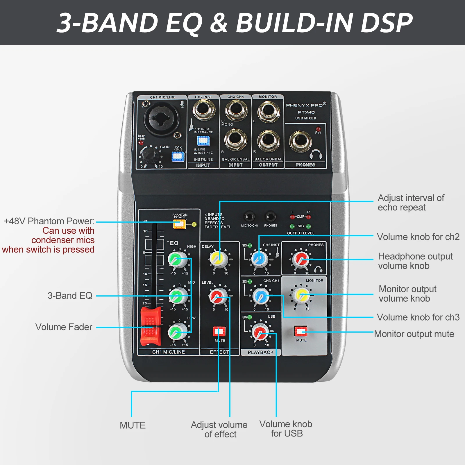 Он производит прочный, чистый и чистый звук с минимальным шумом шипения, хорошо подходит для домашней записи, потоковой передачи, конференц-залов и небольших мест. Встроенный высококачественный цифровой эффект эха придает индивидуальность вашему сочетанию из Ch. 1. Он может использоваться в качестве устройства ввода для веб-трансляции, подкастов, игрового видео, голосоведения или музыкального производства