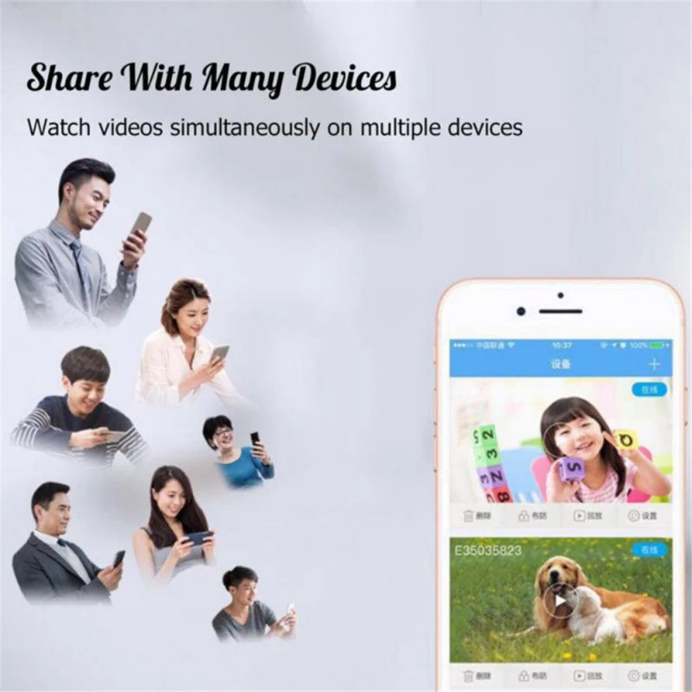 Камера не только маленькая и портативная, но и оснащена всеми полезными функциями, которые вам нужны в вашей повседневной жизни. Широкий угол 120 °, push-оповещения с активированным движением, инфракрасное ночное видение без бликов, запись во время зарядки, Совместимость с iOS Android, воспроизведение в реальном времени или из любого места, запись tf-карт, одна камера для совместного использования с несколькими пользователями