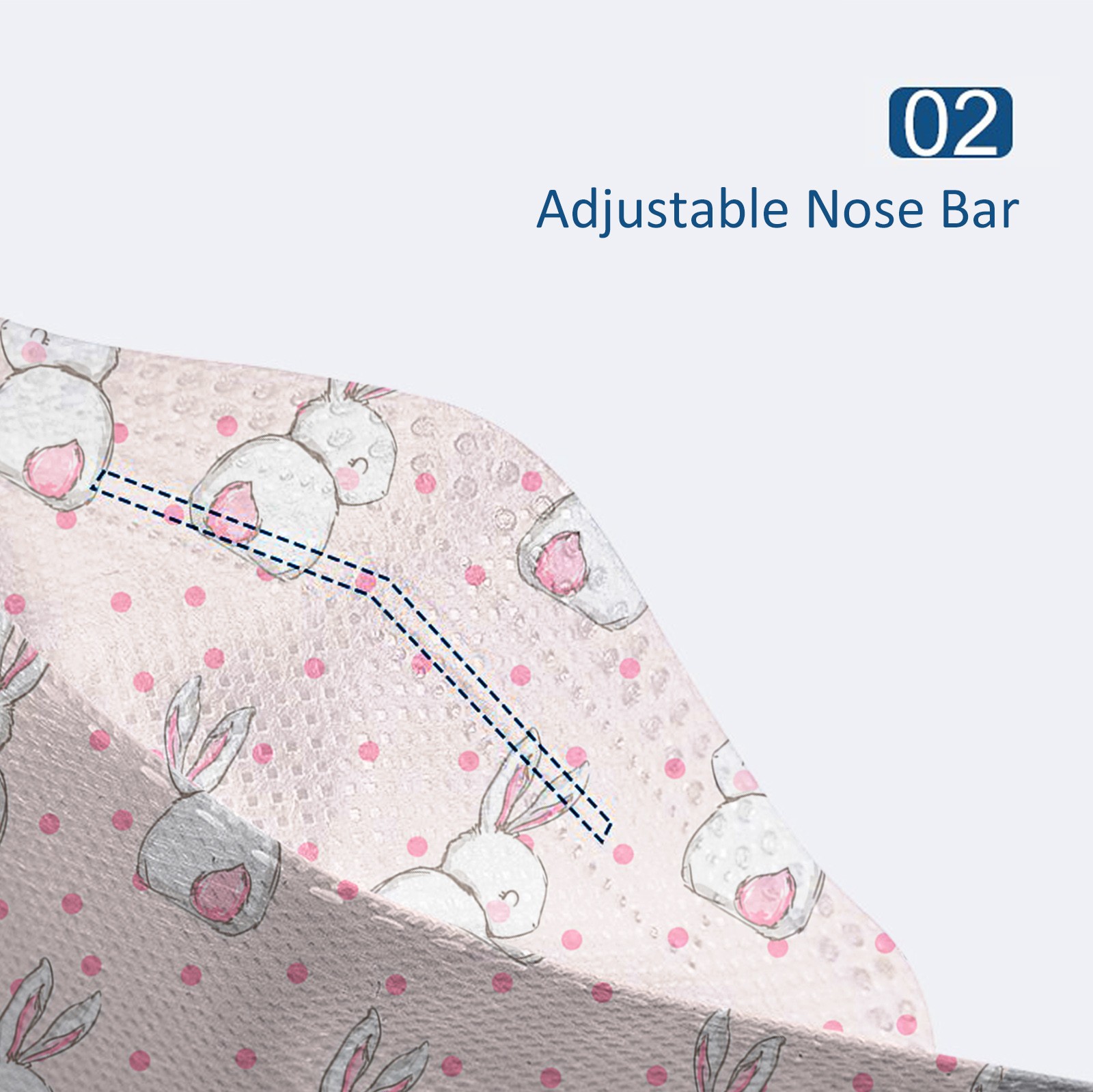 Perfect design, when you wear it , it fits seamlessly into your face. Elastic ear loop is easy to wear and no pressure to the ears.