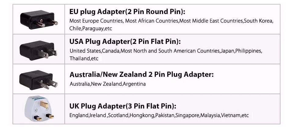 Примечание:Мы вышлем правильный бесплатный адаптер в соответствии с страной назначения, поэтому мы не принимаем никаких споров по поводу языка или неправильного адаптера из-за ошибки.