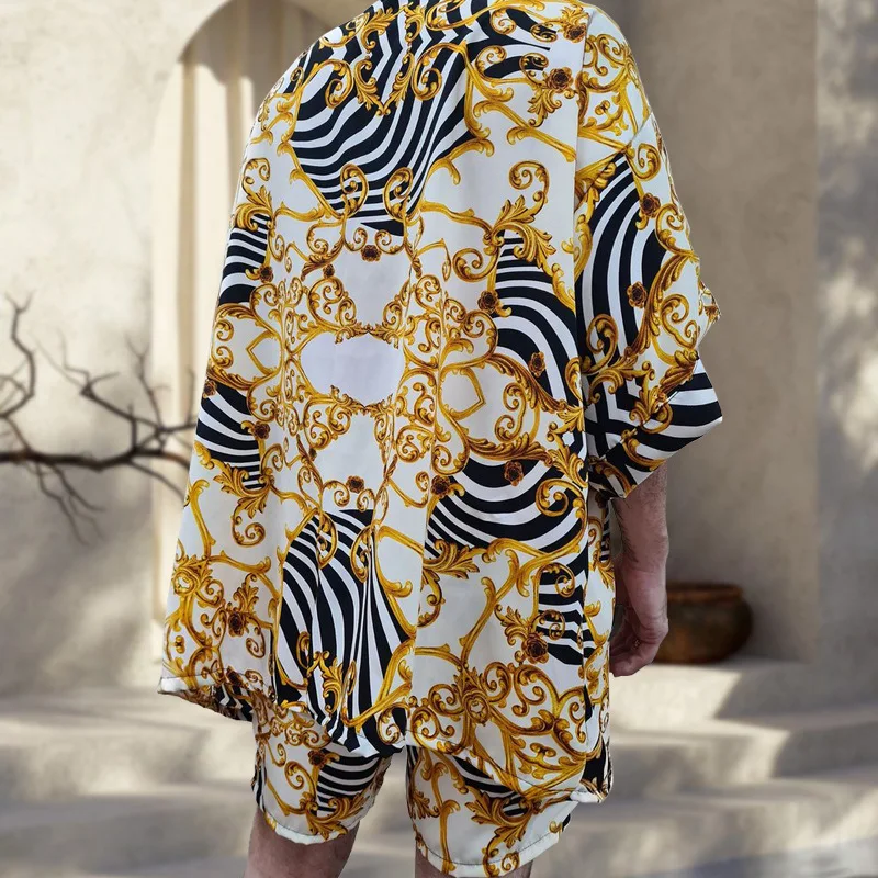 Роскошные мужские рубашки с золотым принтом, Стильная дизайнерская одежда, мужские вечерние свободные платья, комплекты из 2 предметов, необычная одежда