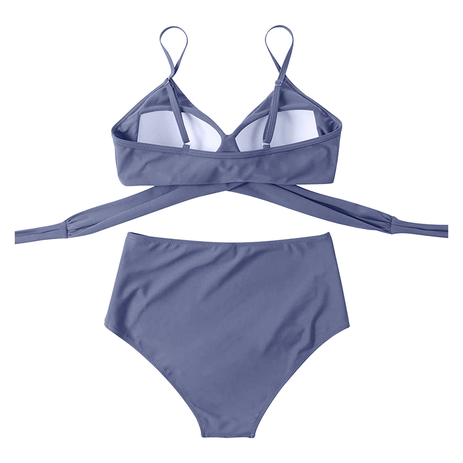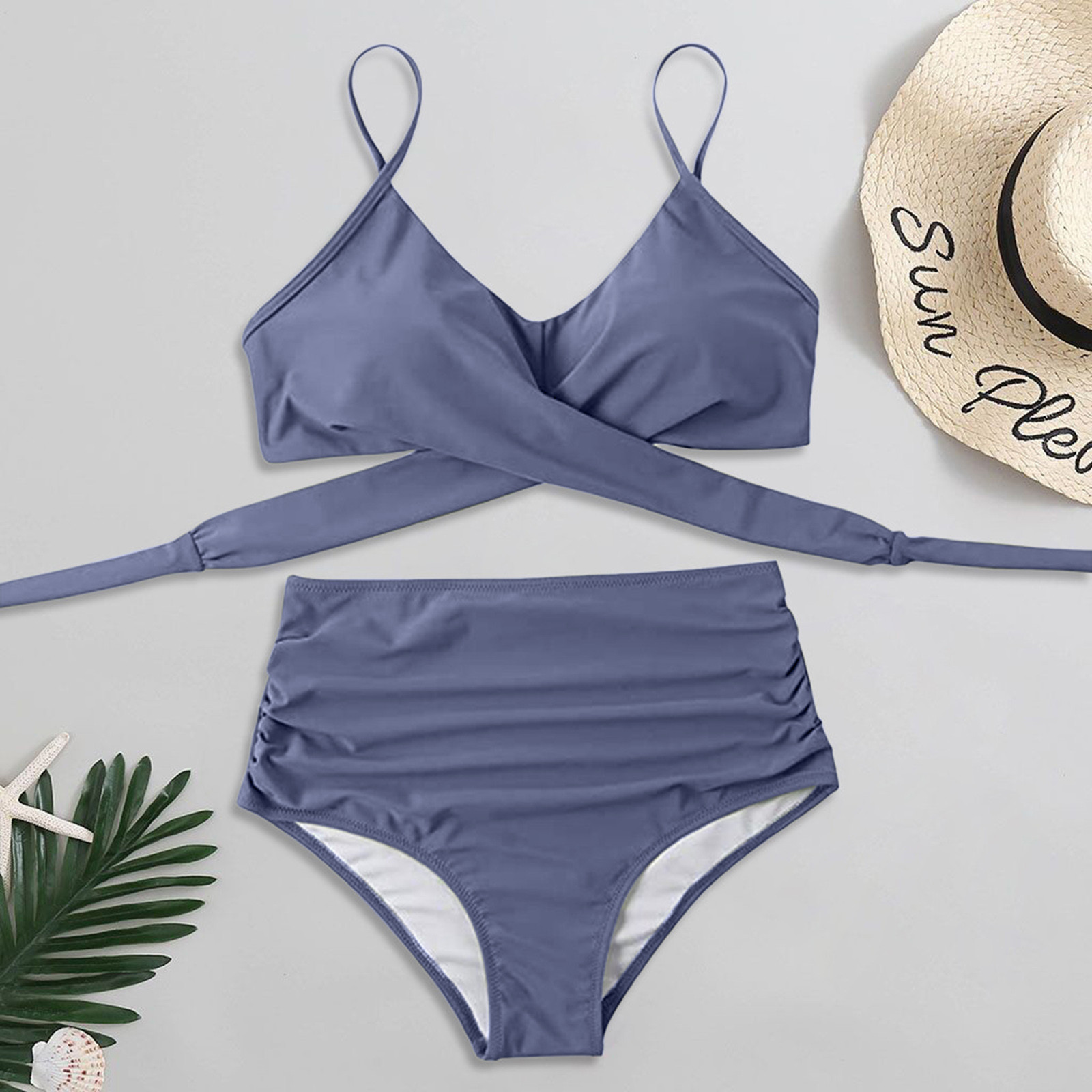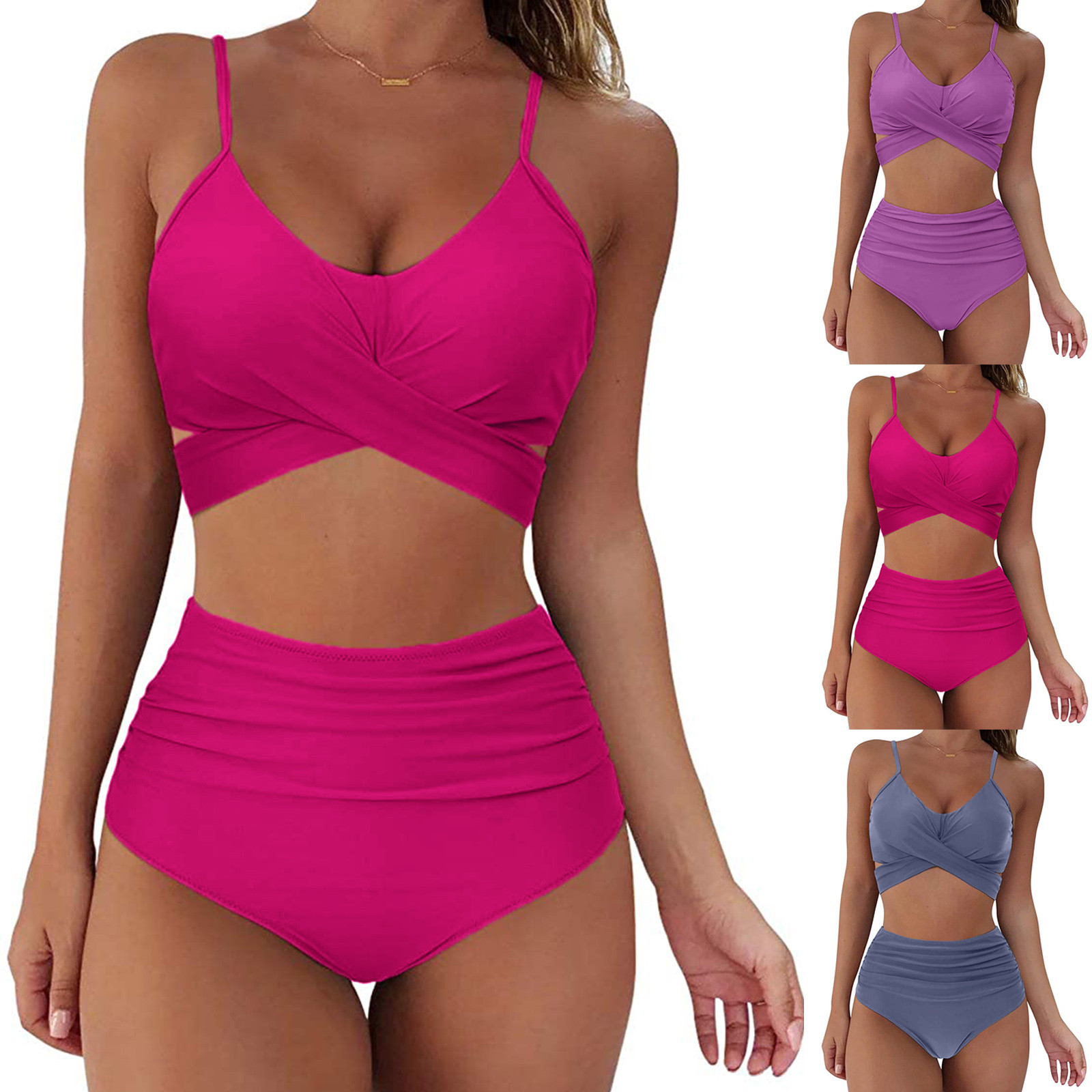 Женский сексуальный однотонный комплект бикини с принтом, пуш-ап, купальный костюм с высокой талией