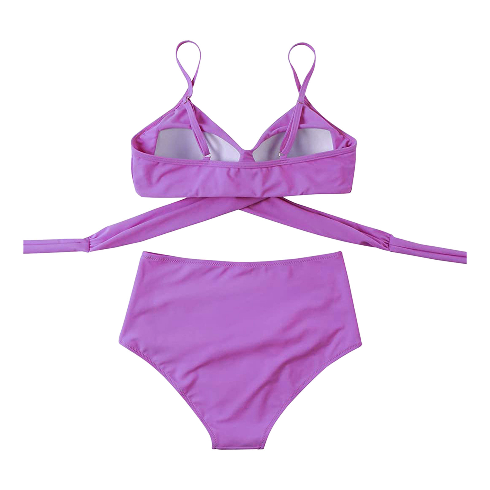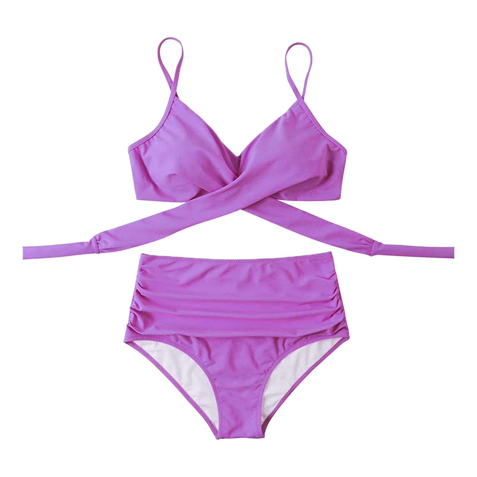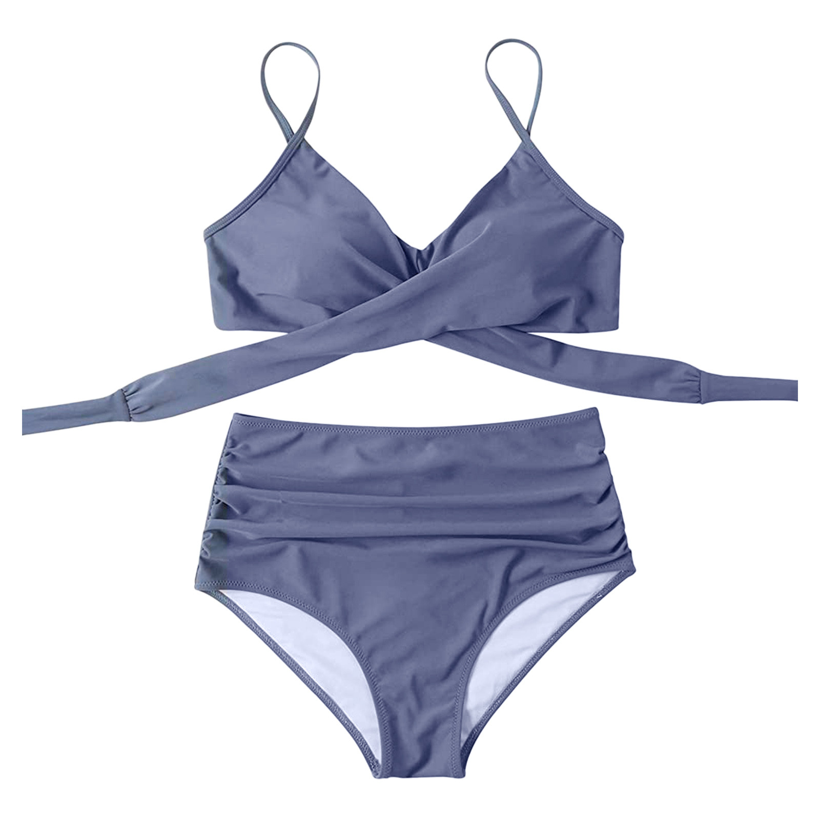 Женский сексуальный однотонный комплект бикини с принтом, пуш-ап, купальный костюм с высокой талией