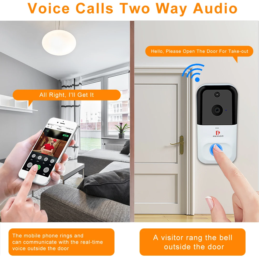 Двухстороннее аудио с шумоподавлением-позволяет вам общаться с вашими посетителями, где бы вы ни находились. И вы можете смотреть видео в реальном времени на мобильном телефоне. Никогда не пропустите посылка