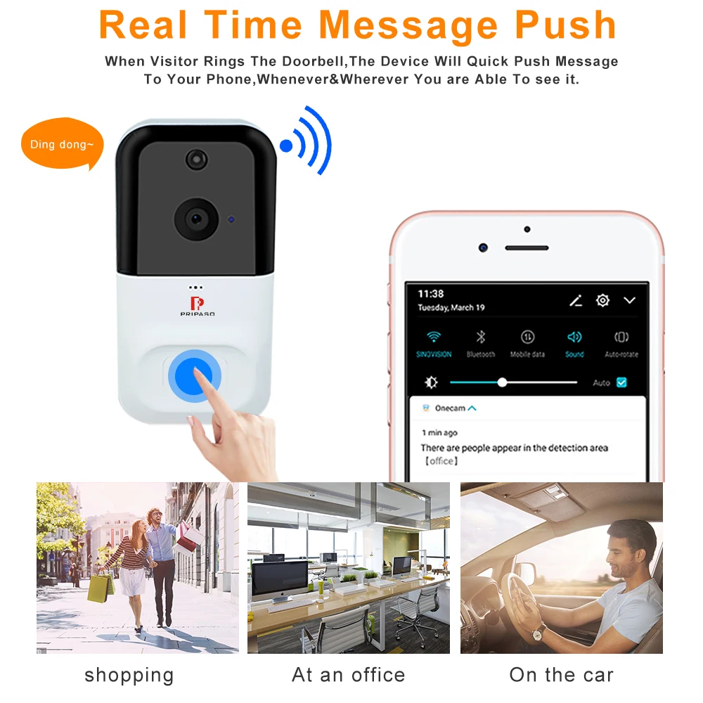 Когда посетитель звонит в дверной звонок, устройство быстро отправит сообщение на ваш телефон, когда и где вы сможете его увидеть