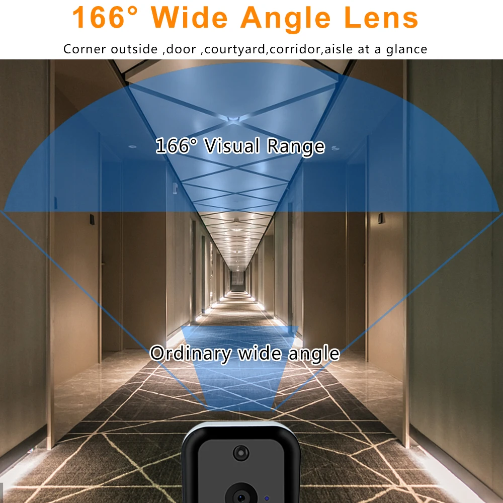 Устанавливается с широкоугольным объективом на 166 градусов, обеспечивает четкое и широкое поле зрения за пределами двери