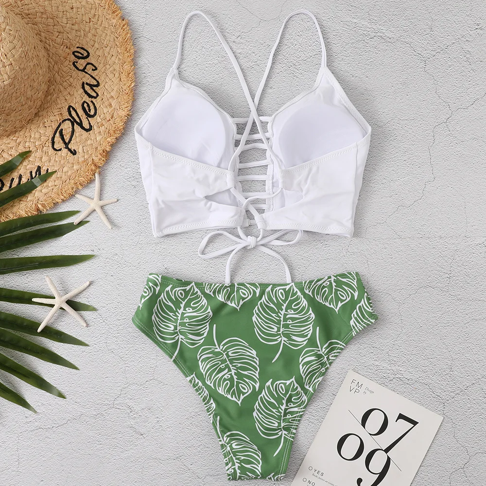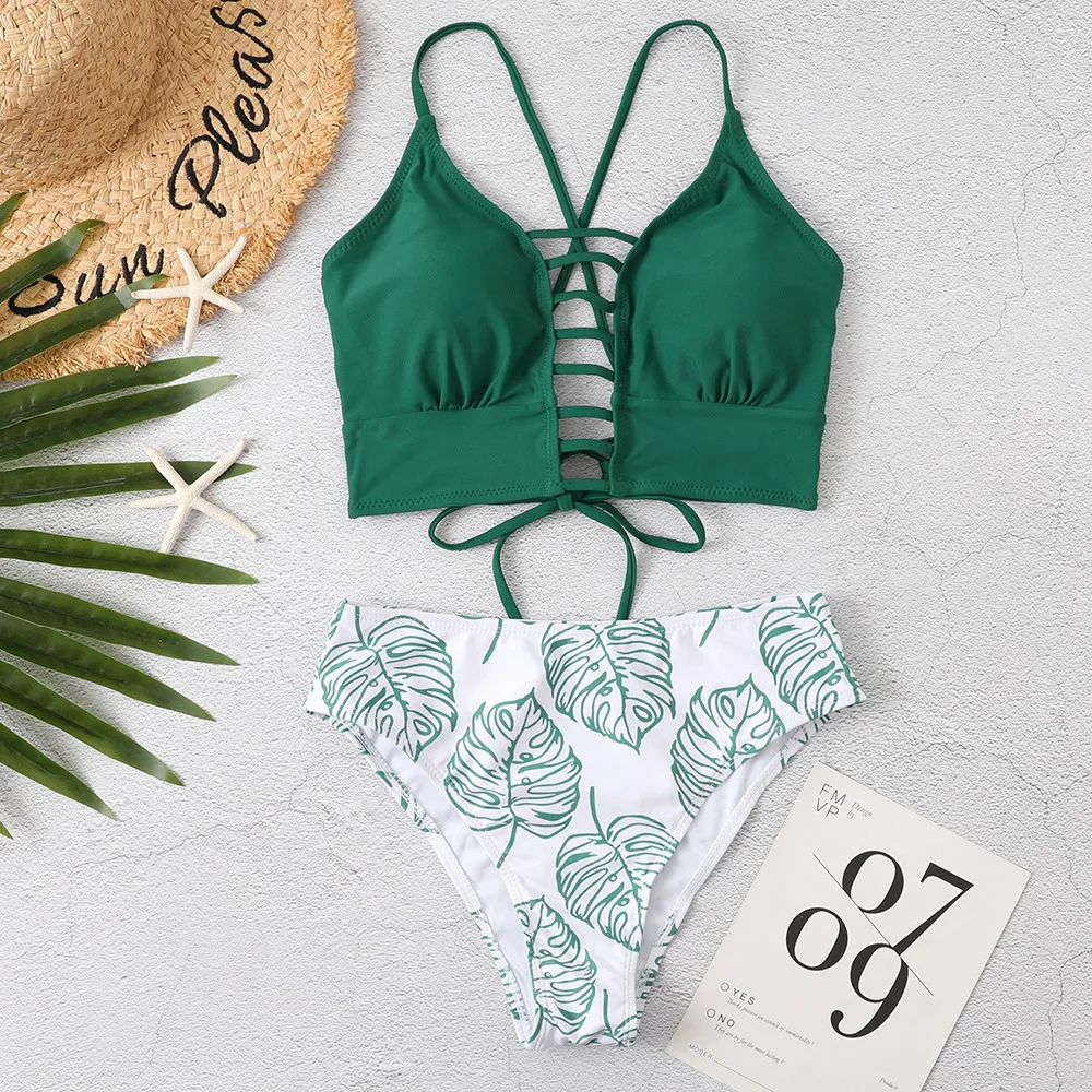 Новинка 2022, женский купальник-бикини, сплошной цвет, сексуальный, спереди, ажурный, с открытой спиной, с несколькими веревками, с высокой талией, треугольный купальник, два предмета