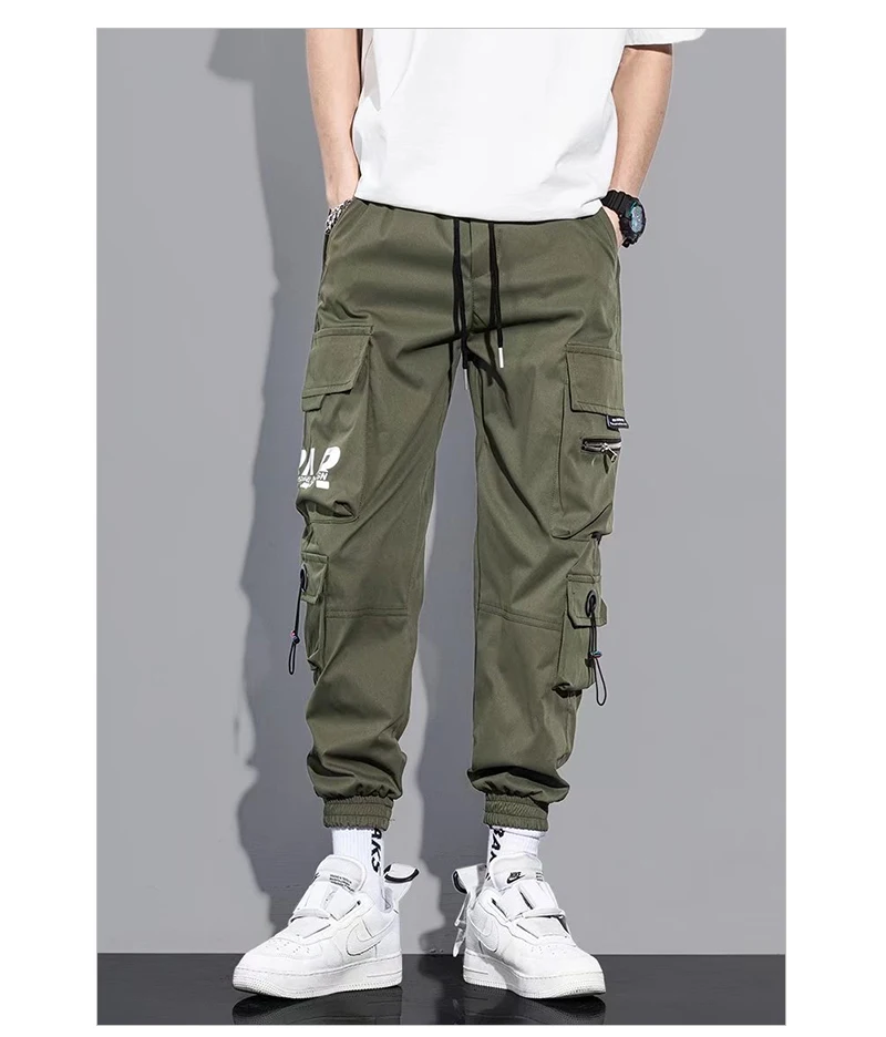 Штаны-шаровары мужские весенне-Летние черные с лентами и карманами