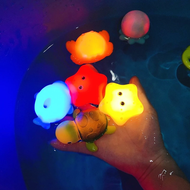 5 шт./компл. Детские мигающие игрушки для купания детская мультяшная Ванна плавающий светильник Морская звезда черепаха Осьминог Дельфин игрушка для бассейна