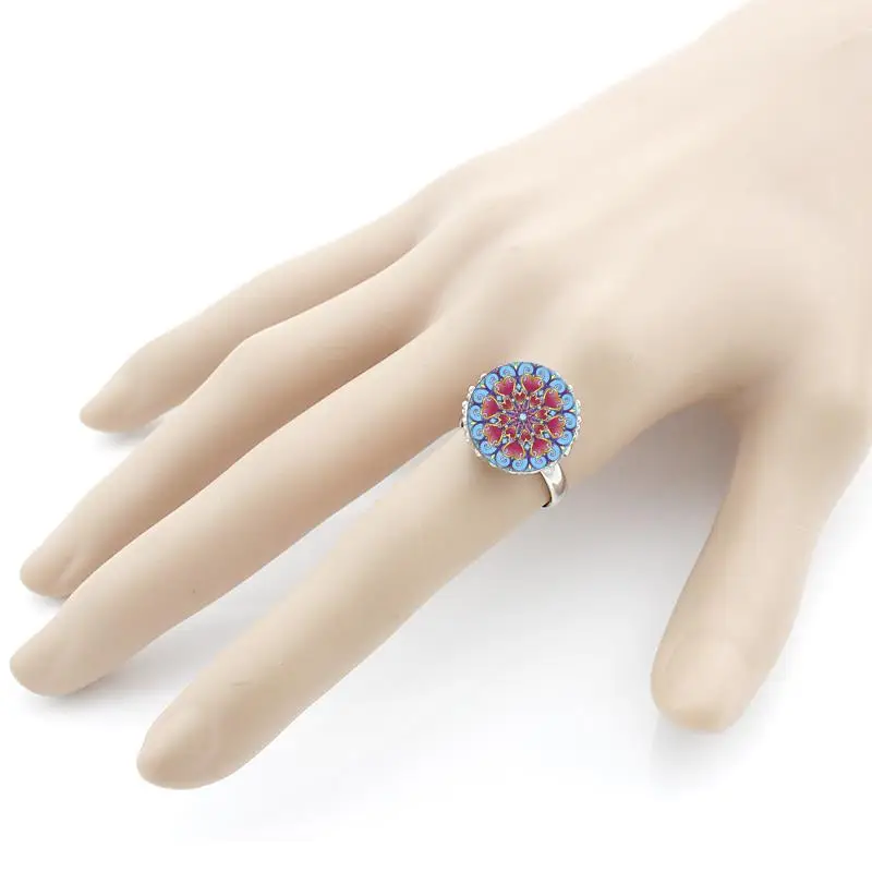 Модное кольцо с красной змеей ручной работы фиолетовое лимонно-желтым цветком