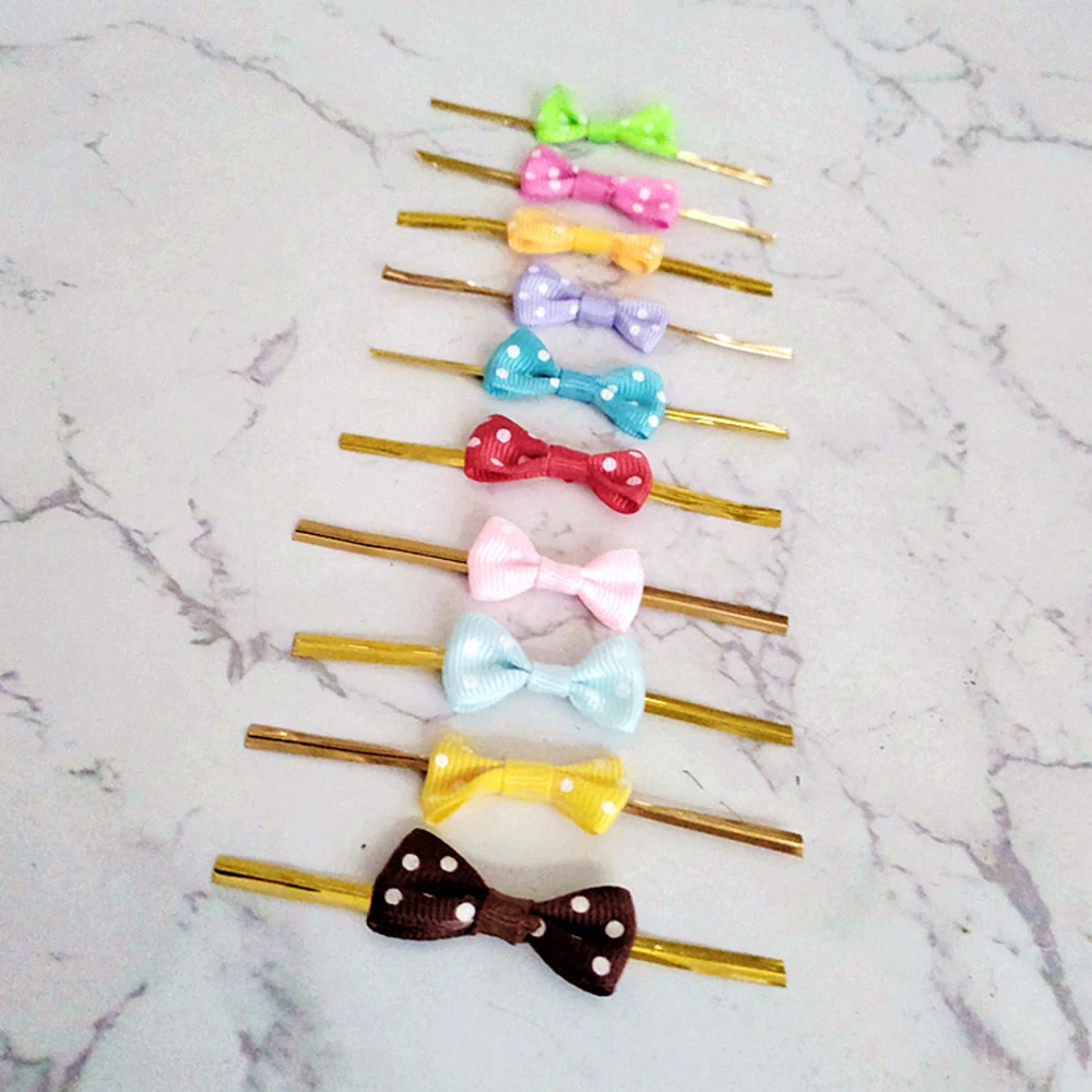 100Pcs New DIY Bow Tie Wrapping Golded Wire Bowknot Binding Wire Lollipop Candy Gift Packaging Bags Fastener Sealing Fixed Ties