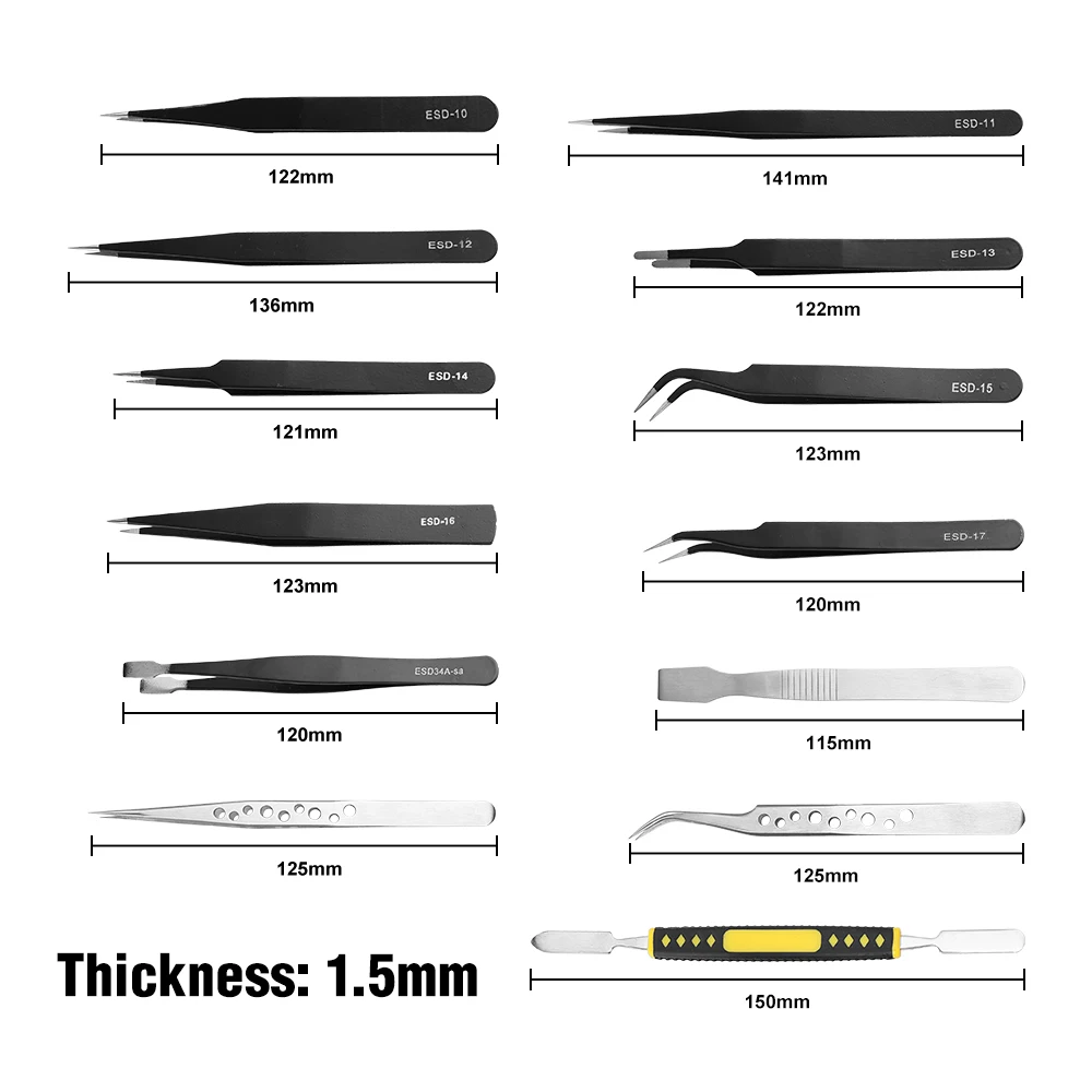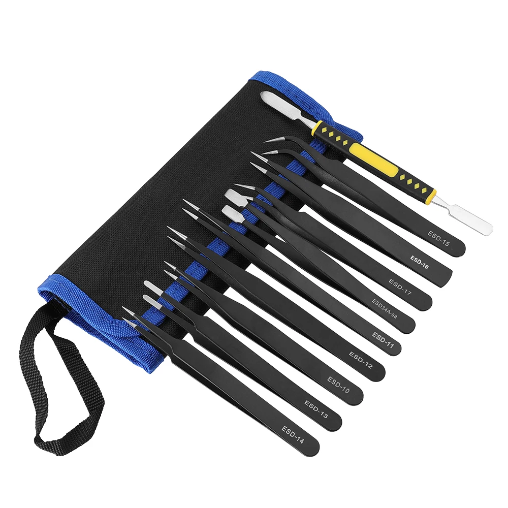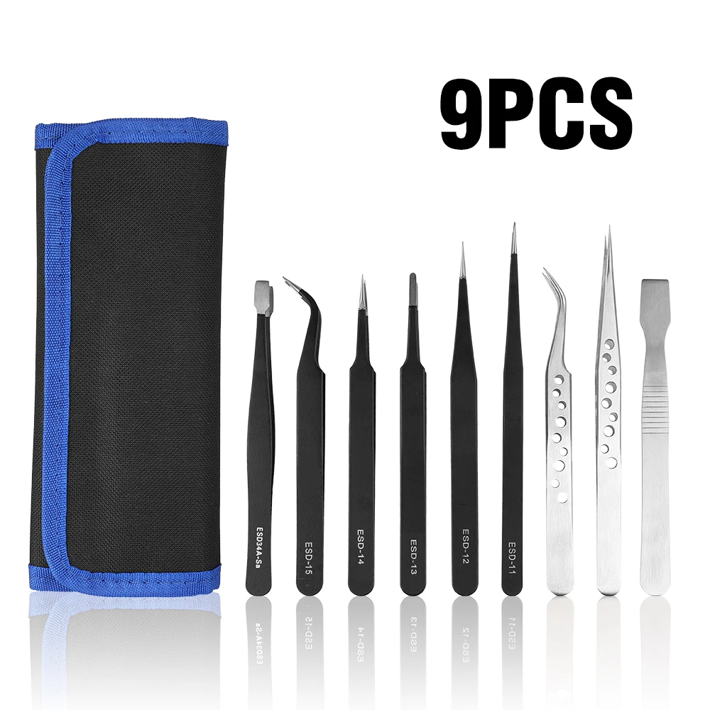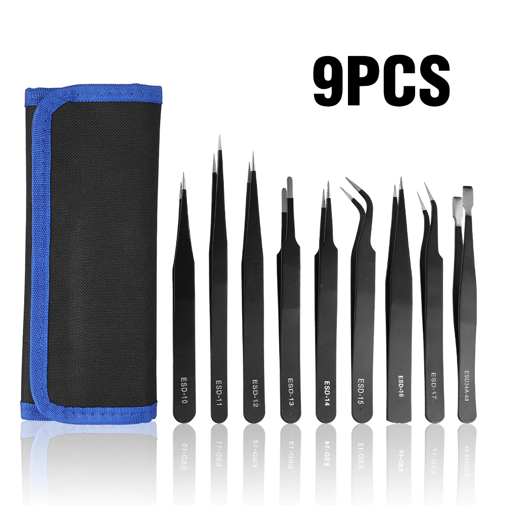 10 шт./9 шт. антистатические пинцеты, электронные пинцеты из нержавеющей стали, прямые инструменты для ремонта, промышленные пинцеты