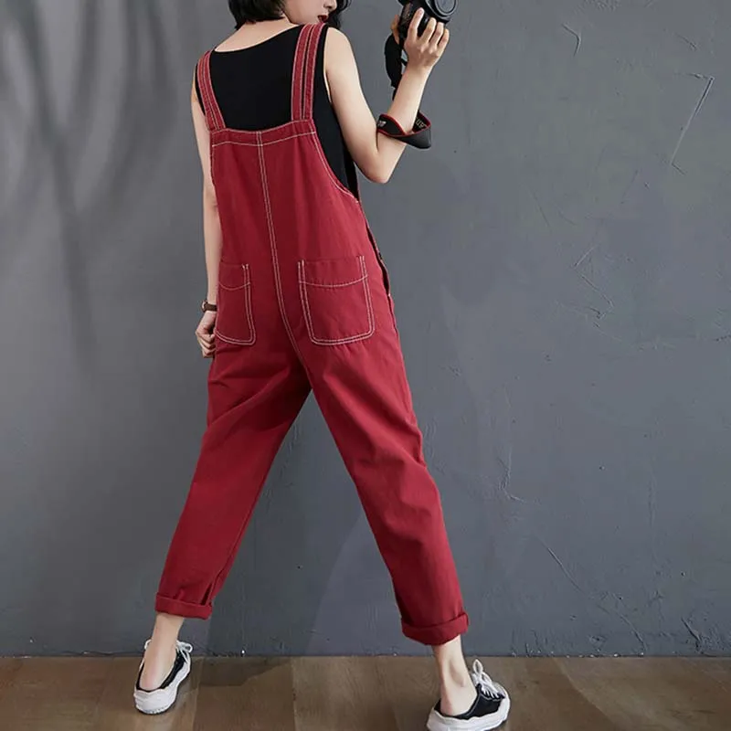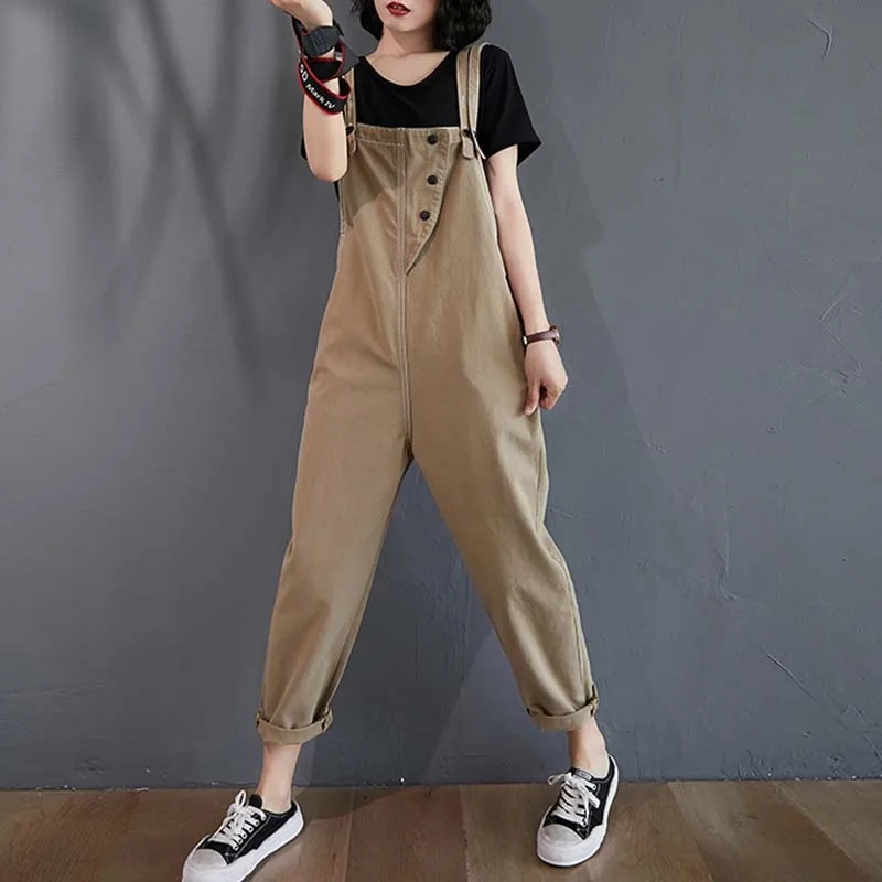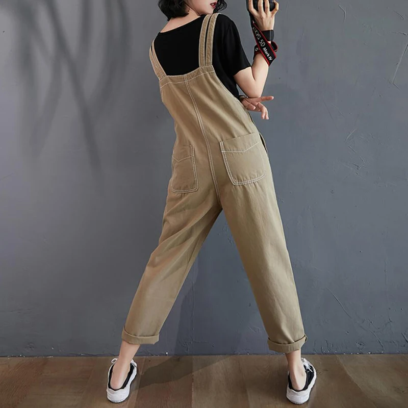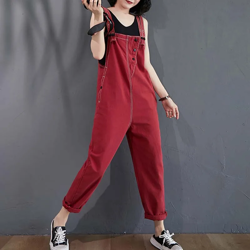 Женские свободные джинсовые комбинезоны в Корейском стиле, однотонные комбинезоны-шаровары, винтажные штаны, женская одежда, fc2029