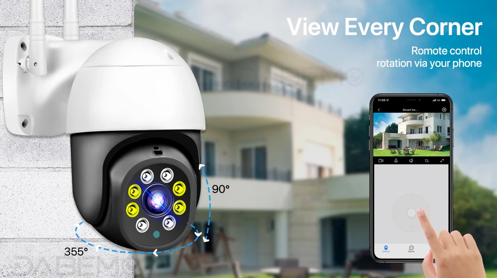 Просмотрите больше деталей или больше объектов без ущерба для качества. Камера с 355 ° по горизонтали и 90 ° по вертикали может перемещаться вверх, вниз, влево и вправо