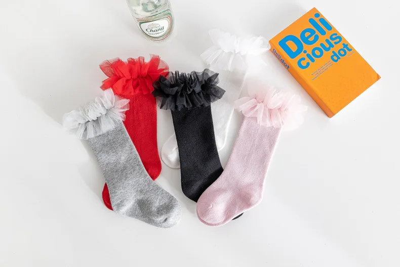 15 пара/лот, осенне-зимние детские гольфы в испанском стиле для маленьких девочек длинные хлопковые носки с кружевной отделкой для новорожденных девочек от 0 до 7 лет