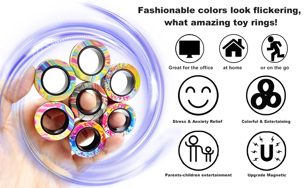 Новейшие обновленные магнитные кольца Fidget Toy Packs. В отличие от гаджетов для снятия стресса, эти магнитные кольца полностью модульные и фристайл. Это веселые кольца для непоседы. Не похоже на традиционные праздники, потому что каждый из этих обручей разбивается, чтобы делать разные трюки.