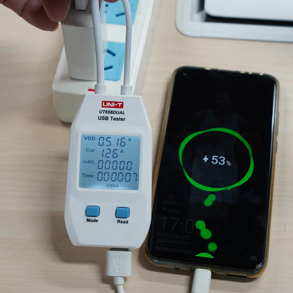 На второе поколение UT658 серии тестеры USB может проверить USB зарядные устройства, портативные Хранители заряда источников, кабели для передачи данных, и других электронных устройств зарядных устройств.