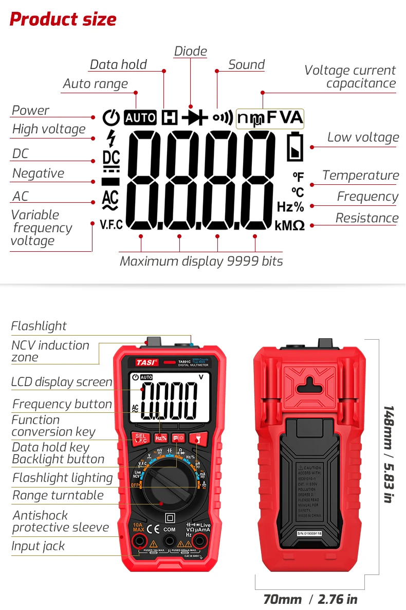 Мультиметр Многофункциональный цифровой с ЖК-дисплеем и подсветкой - купить по