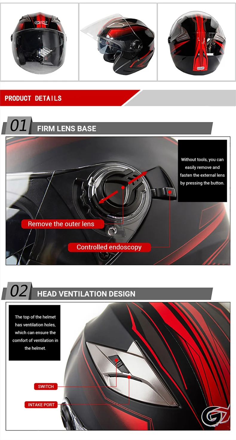 Наименование товара: Двойные линзы мотоциклетные шлемы, половина лица ABS мотоциклетный шлем Цвет: белый, черный, синий, красный Использование для: Mortorcycle , Езда