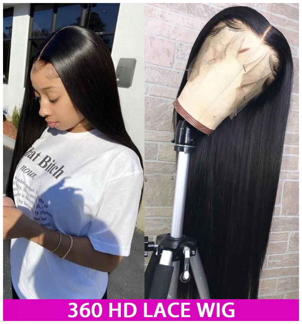 360 Полный парик шнурка человеческие волосы прямые фронтальные парики шнурка prepucked для волос младенца 100% 250 плотность девственные волосы парики для черных женщин