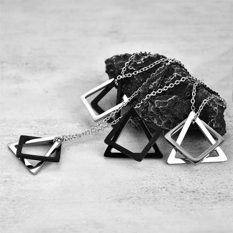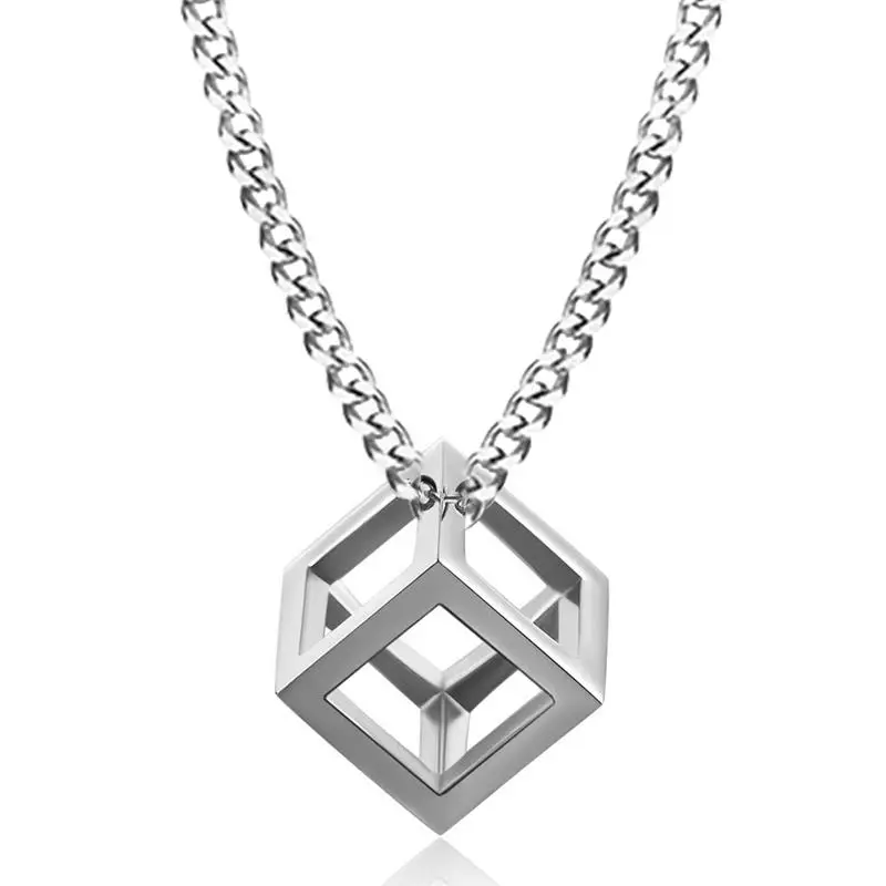 Ретро пустой кубик кулон для мужчин и женщин квадратное винтажное ожерелье из нержавеющей стали панковские геометрические Мужская цепочка на шею