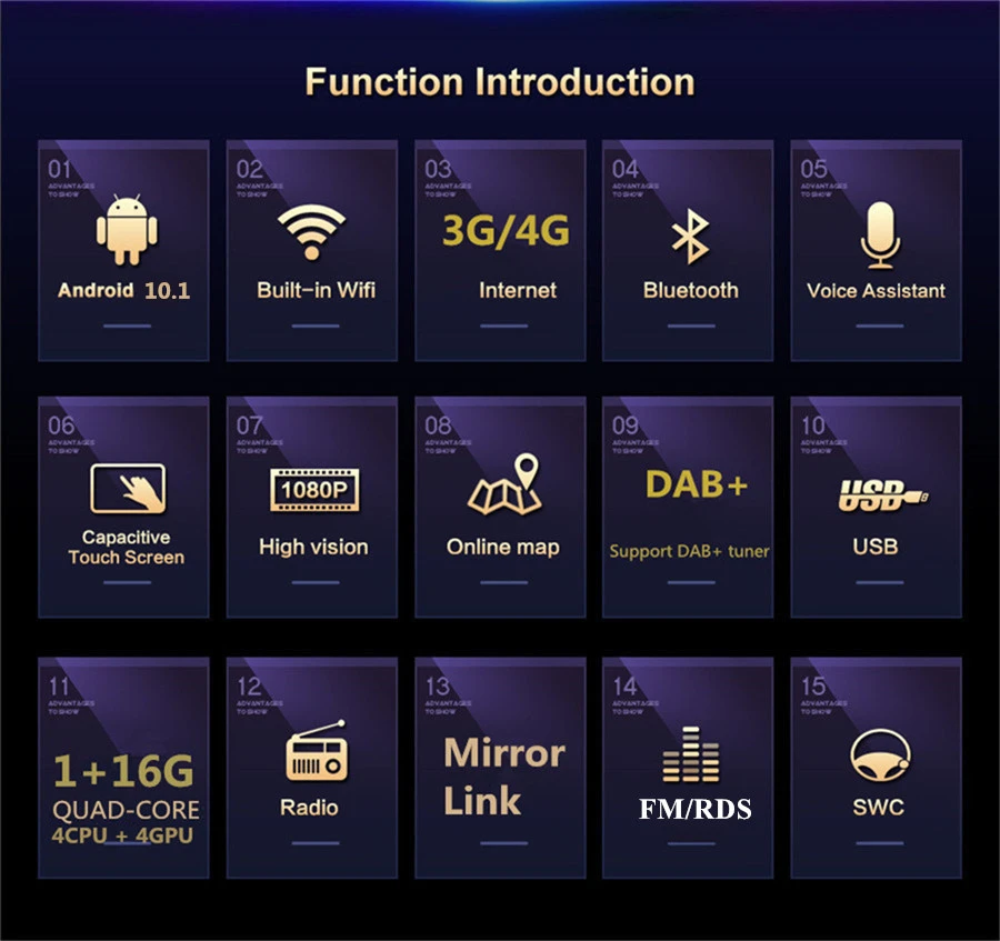 DiSplay | -Сенсорный экран: Да -Разрешение: 1024*768 -Емкостный или экран сопротивления: емкостный -Встроенные часы и календарь: Да, показать в реальном времени и может использовать сеть-при условии времени -Отображение состояния основного меню: можно изменить на музыку/радио/BT-стерео плеер и часы/дату/неделю -Изменение приложения-положение значка: Да -Изображение на картинке сплит-экран: Поддержка Разделение Функция экрана позволяет использовать два приложения одновременно. Например, запуск навигации с музыкальным проигрывателем или радио с Навигация в то же время. Оптимальное удобство как для водителя, так и Пассажиров. |