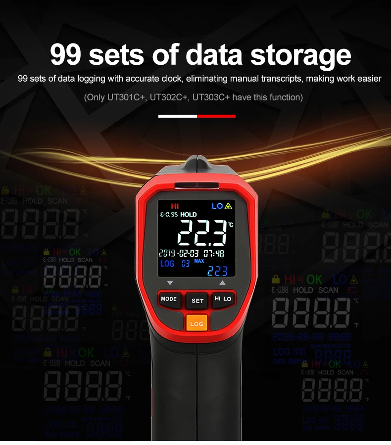 8. Запись температуры до 99 групп (UT301C +)