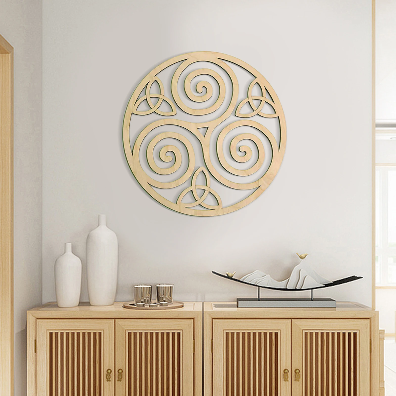 1. Материал твердой древесины: спиральное кельтское украшение узла изготовлено из высококачественных и экологически чистых панелей из твердой древесины, с стабильной структурой, простой и щедрый, и он отображает изысканную фреску, это символ кельтской культуры.