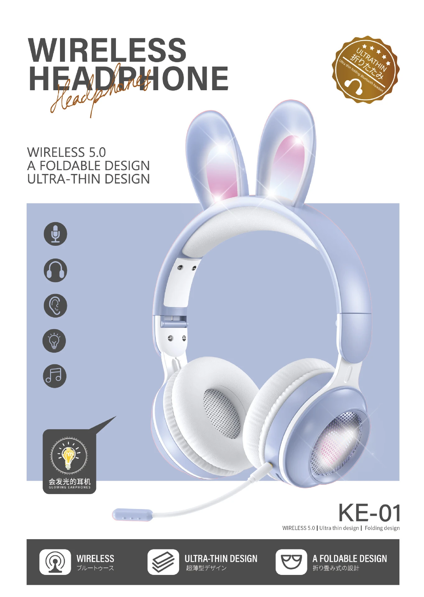 Дизайн ушной раковины, отсутствие давления на ухо, Высокоэластичный белковый материал кожи, мягкая текстура, хорошая воздухопроницаемость, удобная и безболезненная одежда; Складное хранение.
