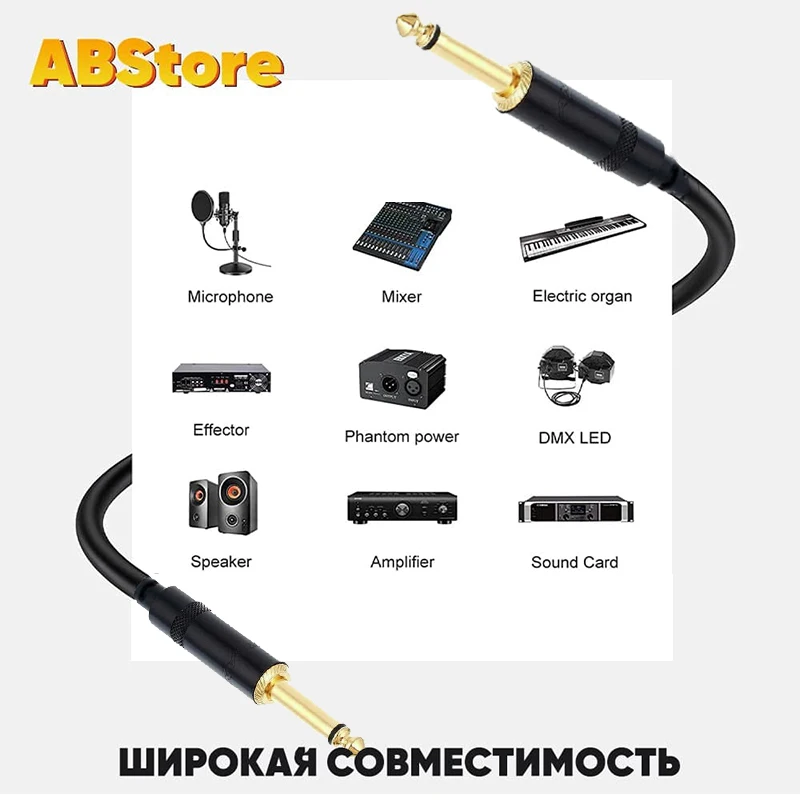 Для подключения музыкальный инструментов с разъёмами Jack 6.3. Кабель обеспечивает отличное качество передачи сигнала. Отлично подойдет для связи различных компонентов при звукозаписи или установке усилителя. Он обеспечит надежное и эффективное соединение без потери качества сигнала. За это отвечает продуманная конструкция кабеля: экранированное плетение гарантирует прочность кабеля и отсутствие искажений. Угловой коннектор предотвращает преломления кабеля, а комфортная длина позволяет использовать его для студий и живых выступлений.