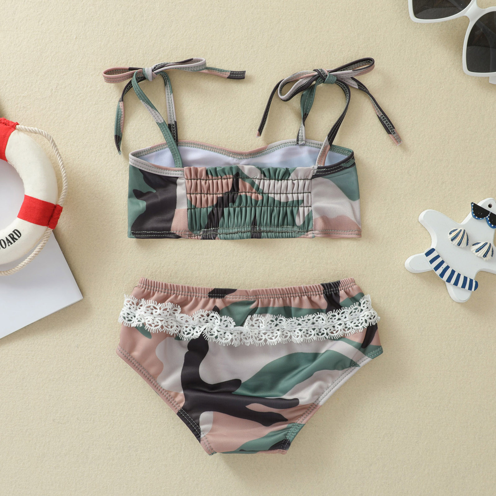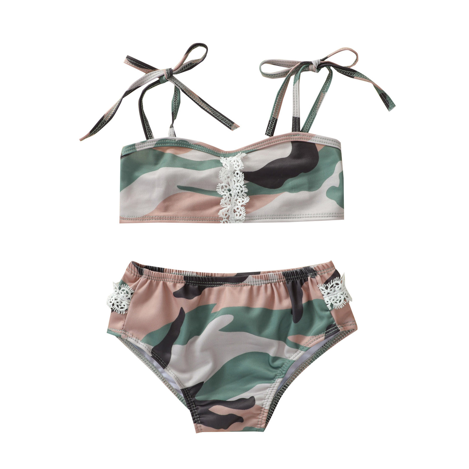 Летний От 3 месяцев до 3 лет для маленьких девочек; Камуфляжный купальник-бикини с леопардовым принтом; Комплект из двух предметов