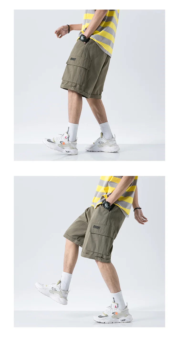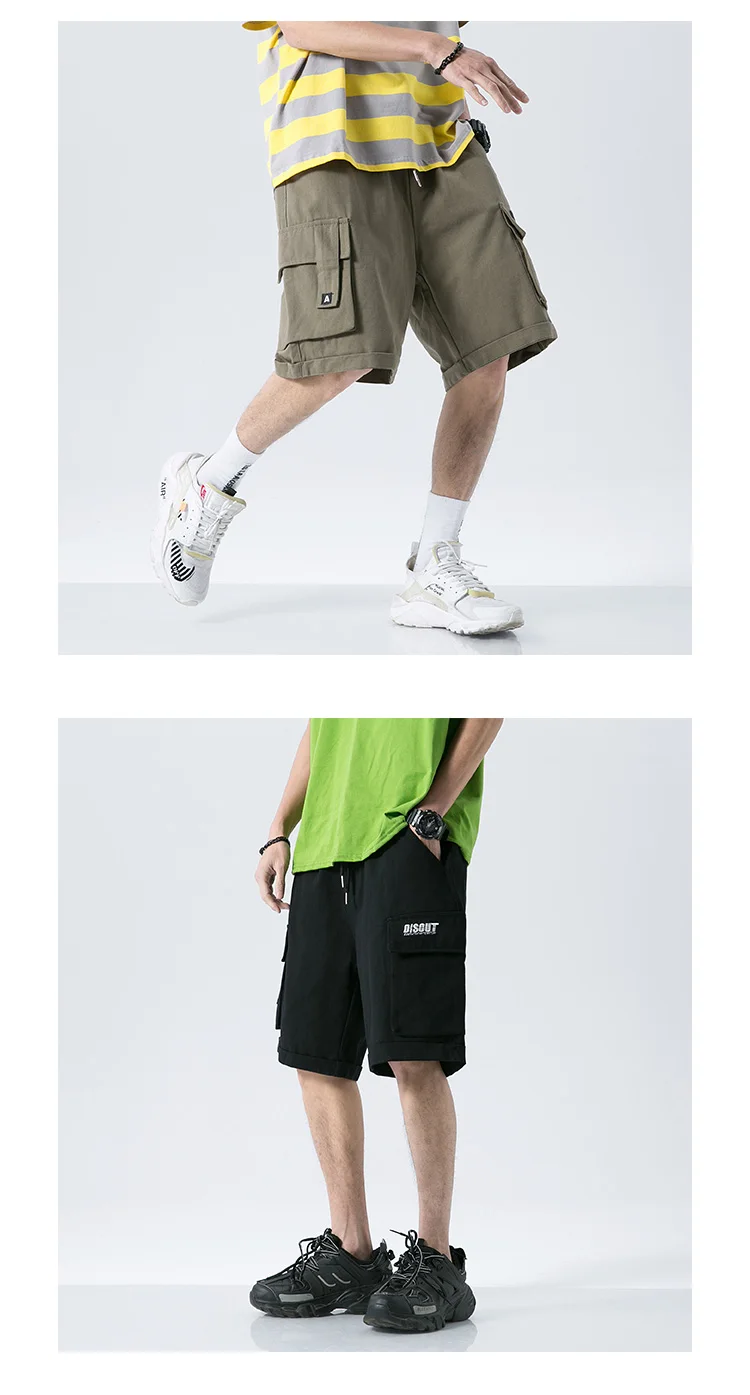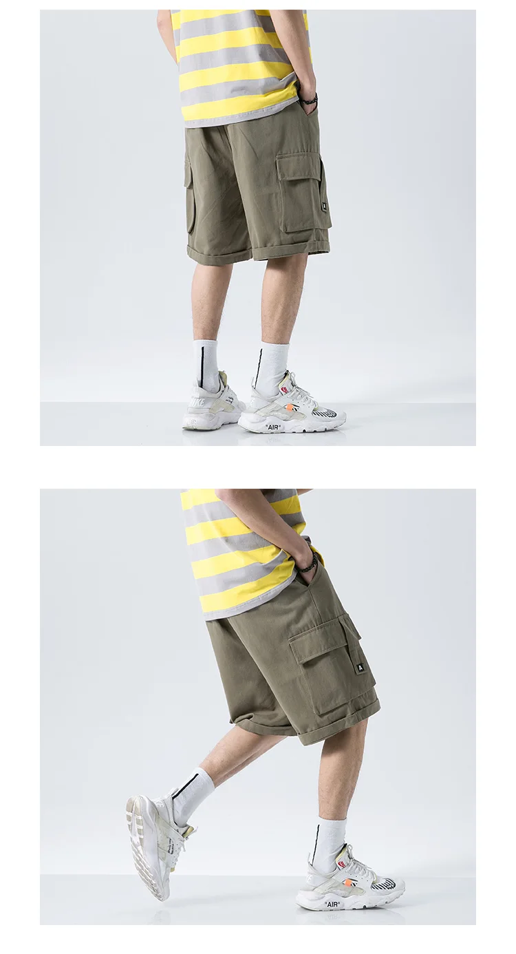 Мужские летние шорты-карго, модные мужские шорты до колена с завязками, хлопковые рабочие бермуды цвета хаки, Masculina размера плюс