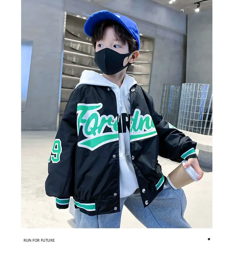 Хлопковая куртка для подростков; Весеннее повседневное пальто для подростков; Детская ветровка на молнии с капюшоном и надписью; Тонкое пальто для маленьких мальчиков; Одежда для мальчиков