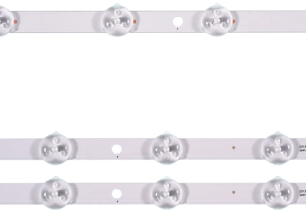 LED подсветка — это электронный модуль состоящий из светодиодов и линз рассеивания осуществляющих освещение матрицы в ЖК-телевизорах. По истечению достаточно большого срока эксплуатации из строя могут выйти отдельные компоненты и очень редко сам блок. Справедливости ради нужно отметить что светодиоды — основной элемент подсветки телевизора — имеют свой срок служб(количество рабочих часов), по истечение которого необходимо заменить все модули подсветки во избежание повторных выходов из строя. В зависимости от конструктивного исполнения, светодиодная подсветка может быть торцевой и тыльной. Торцевая подсветка на белых светодиодах позволяет создавать очень тонкие панели, так как светодиоды располагаются по бакам ЖК-панели.Тыльная подсветка предполагает использование групп светодиодов, либо отдельных модулей, размещенных в определенном порядке позади ЖК-матрицы по всей площади экрана. Основные симптомы выхода из строя LED подсветки: • Звук в телевизоре есть изображения нет • Изображение показывает пятнами • Изображение моргает • Часть экрана светится часть нет. Внимание! точную причину поломки может установить только специалист. Внимательно сверяйте все данные прежде чем сделать заказ.