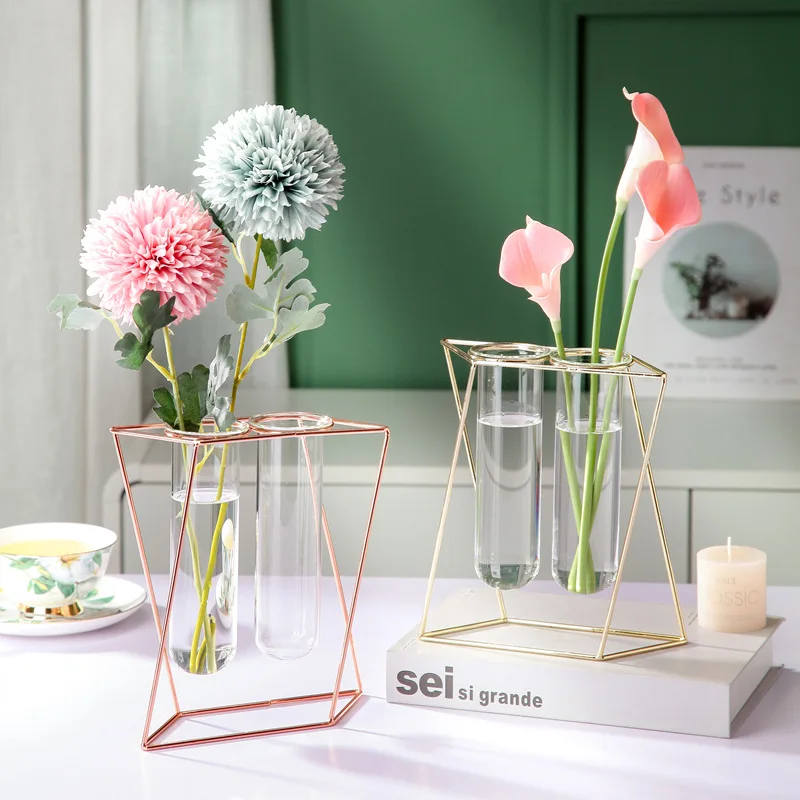 ⭐Прочный: ручная работа с самым продаваемым металлическим геометрическим орнаментом, прочная металлическая рамка материал, кристально чистое стекло гидропонная ваза;
