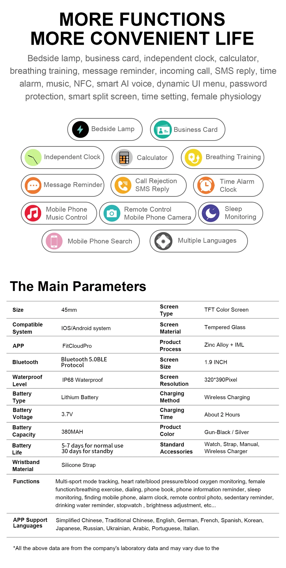 Другое: Поднимите запястье, чтобы осветить экран, напоминание о будильнике, пульт дистанционного управления, чтобы сделать фотографии, найти мобильный телефон и т. Д.