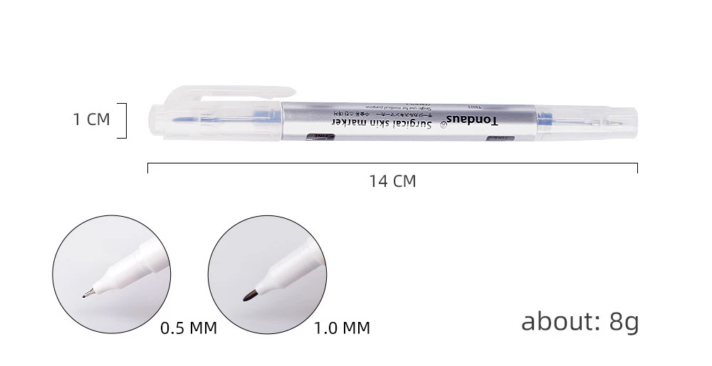 Хорошо подходит для маркировки и определения местоположения на коже, четко обозначенной, безопасно использовать на коже 1. Изготовлено из медицинских материалов, гигиенично и безопасно. 2. В основном используется перед татуажем бровей или отбеливанием губ, помогает татуировщикам быстро и точно определить области татуировок. 3. Точные точечные наконечники могут легко нарисовать точные и чистые линии, подходят для татуировок художника или новичка. 4. Хорошая водонепроницаемость, не легко выцветает во время нанесения татуировок. 5. Его можно использовать для разделения области пирсинга или татуировки, чтобы создать отличные линии.