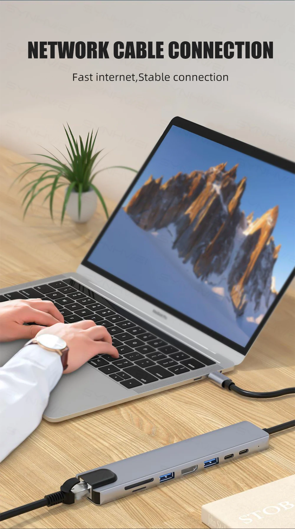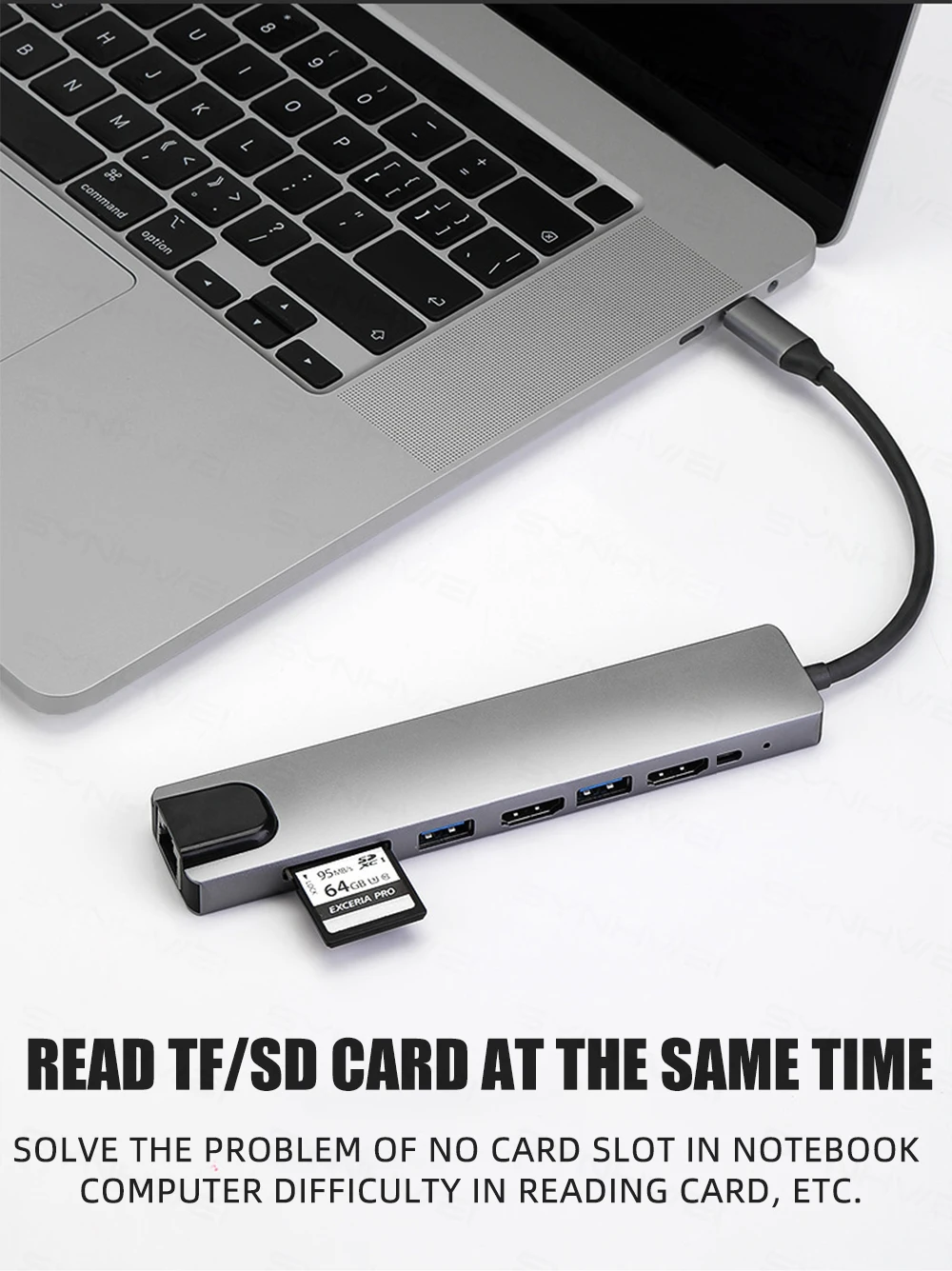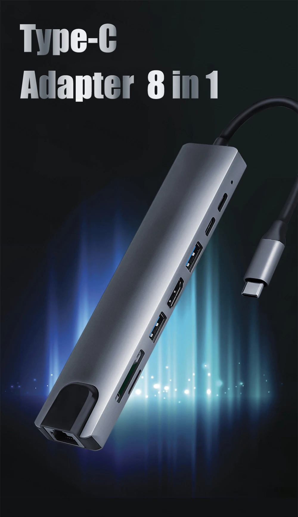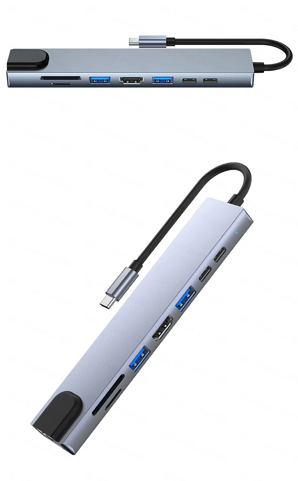 8 Ports : 2Type c PD 87W +2USB3.0 +SD/TF card reader +1*RJ45 Ethernet 100mbps +1*HDMI 4K 30HZ